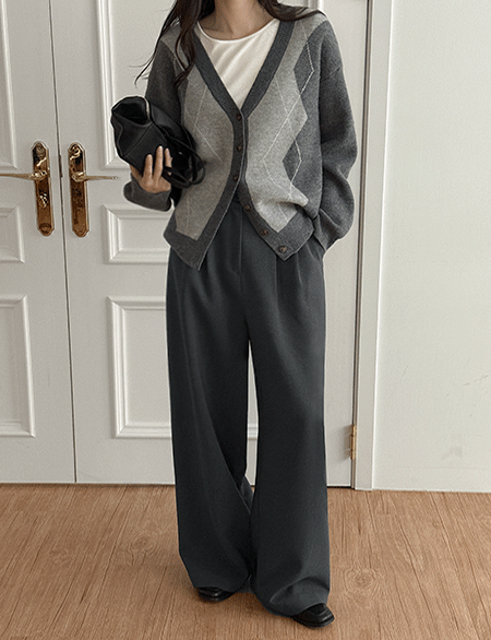 파율 V-neck 아가일 loose fit Cardigan 86109