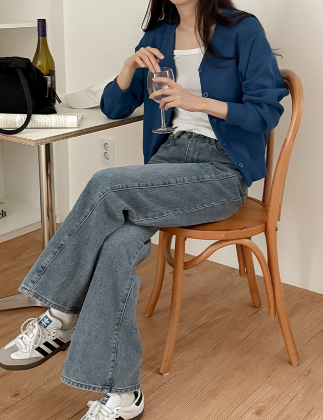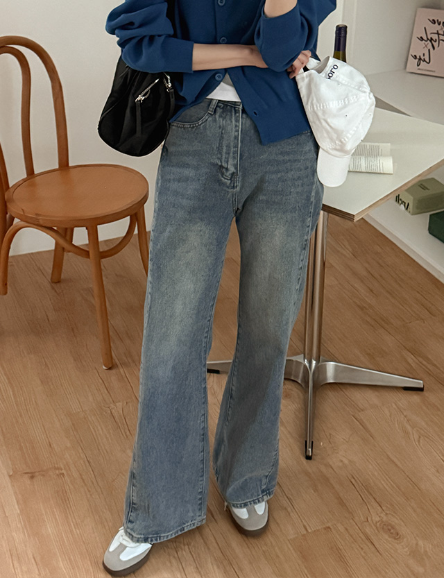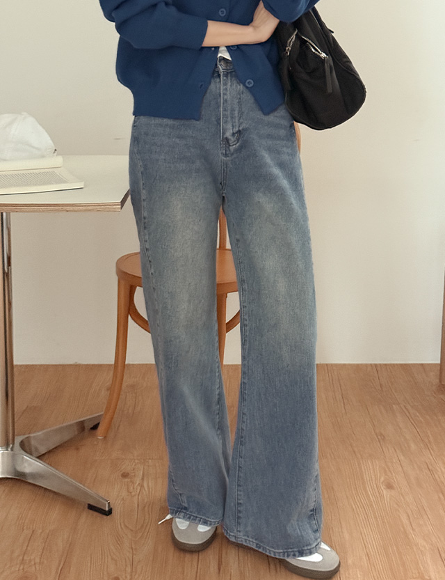 [2가지기장] 플리 사이드 절개 세미 . Denim Pants 86033