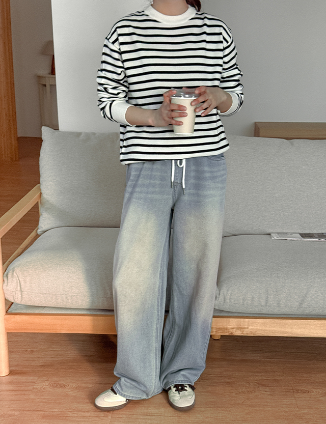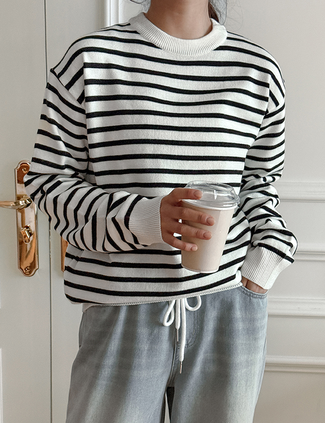 [남여공용] 레버 Stripe Raund neck Knit 86165