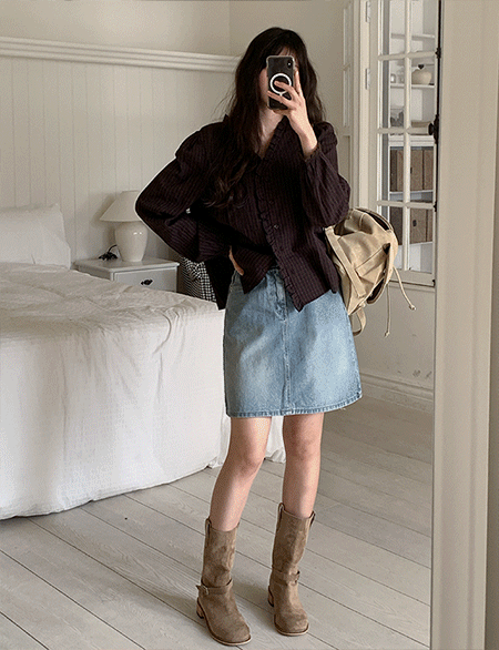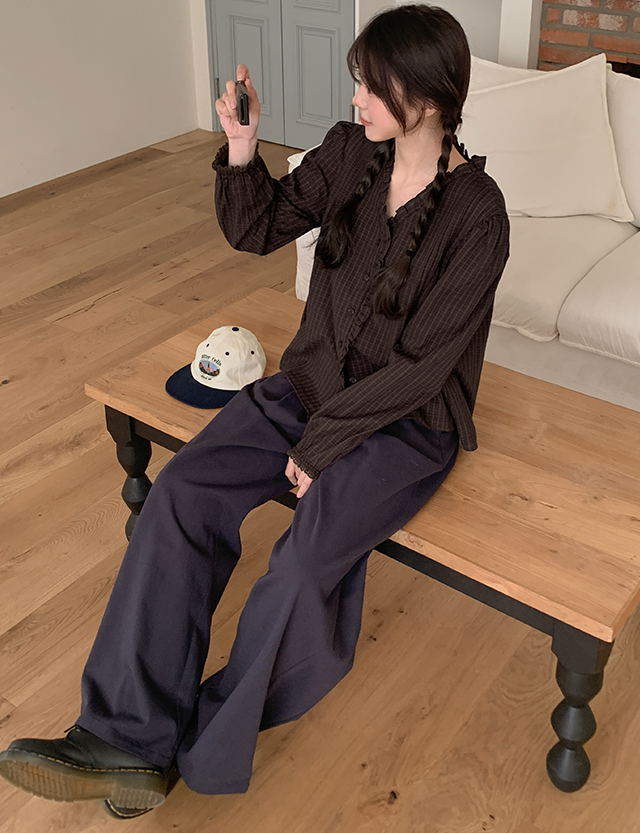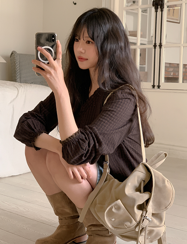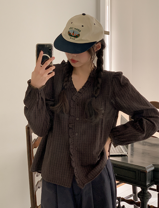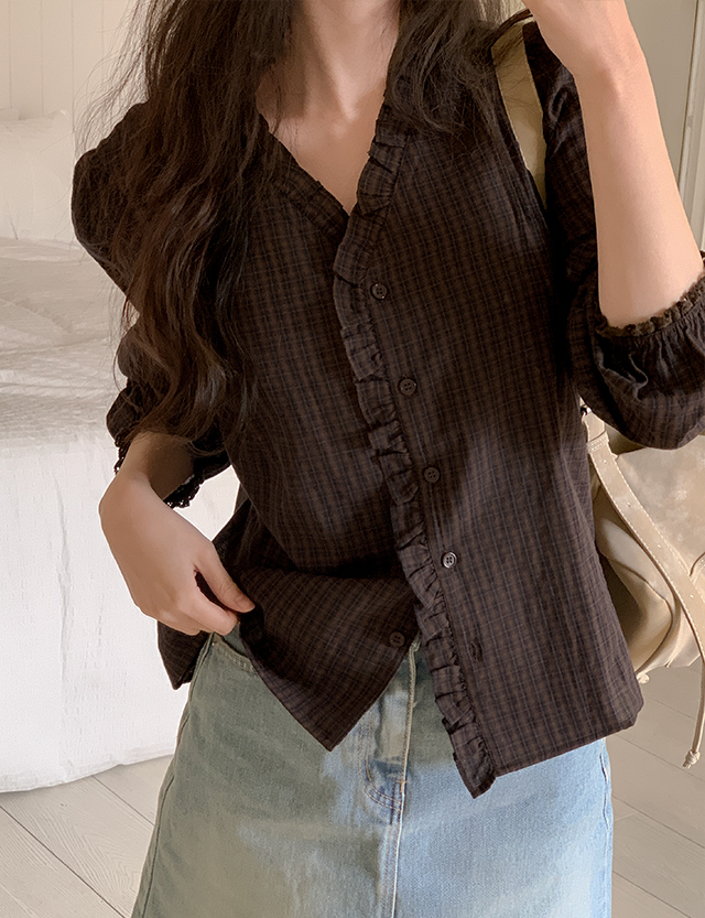 베올 loose fit Check Freel Blouse 86174