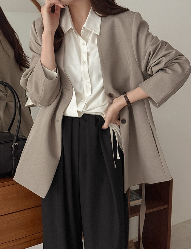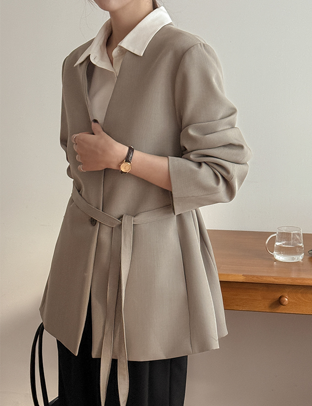 린켈 Basic loose fit V-neck Belt Jacket 86269