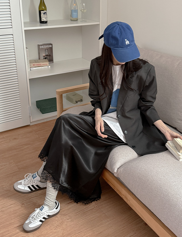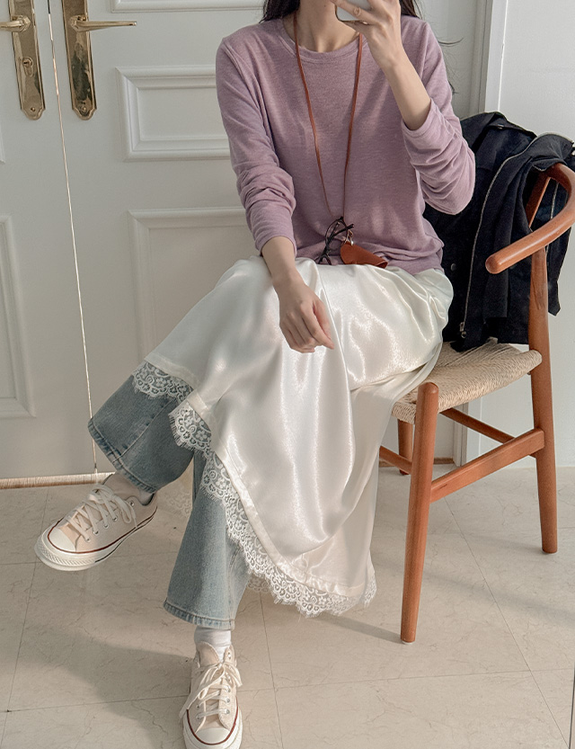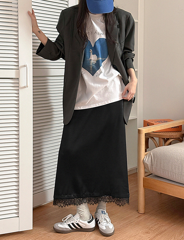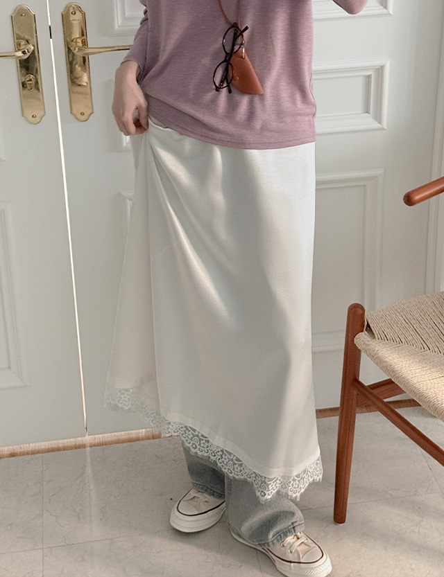 [09초이스][하체커버] 촉감굿 여신핏 샤틴 Race Long Banding Skirt 86327
