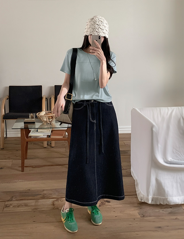 스판쭉쭉 Slim Basic . 절개 Short-sleeve T-shirt 86451