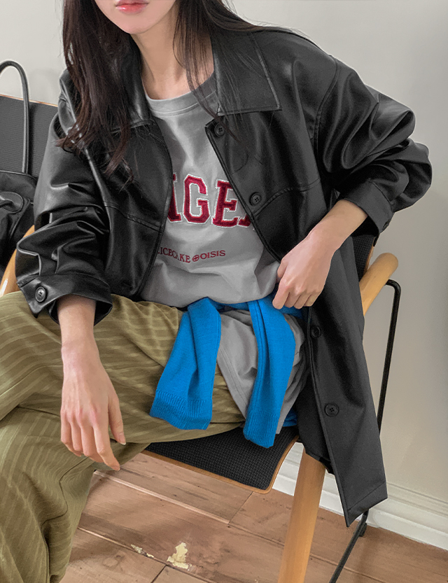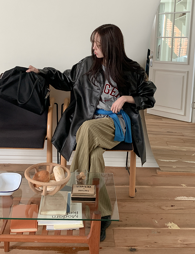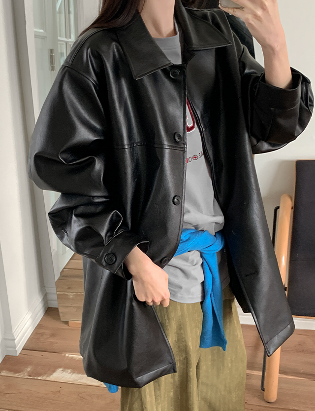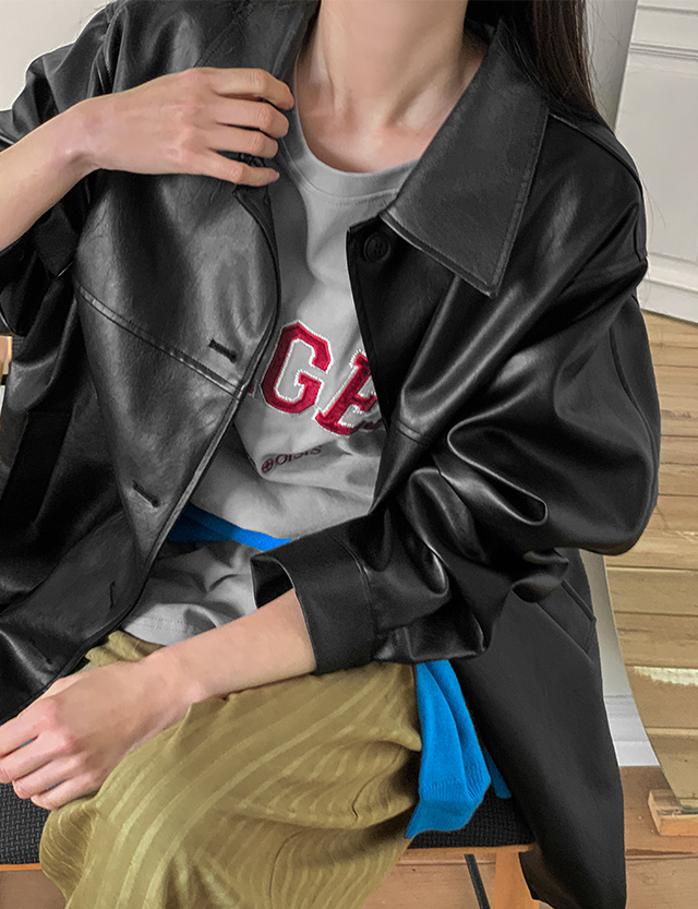 텐더 loose fit 비건 레더 Harp Jacket 86453