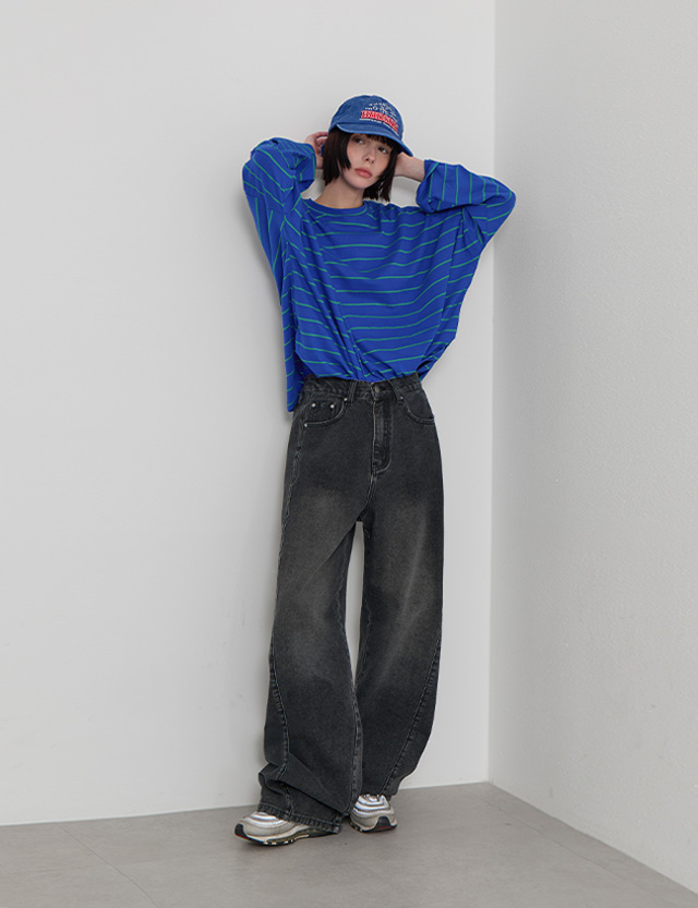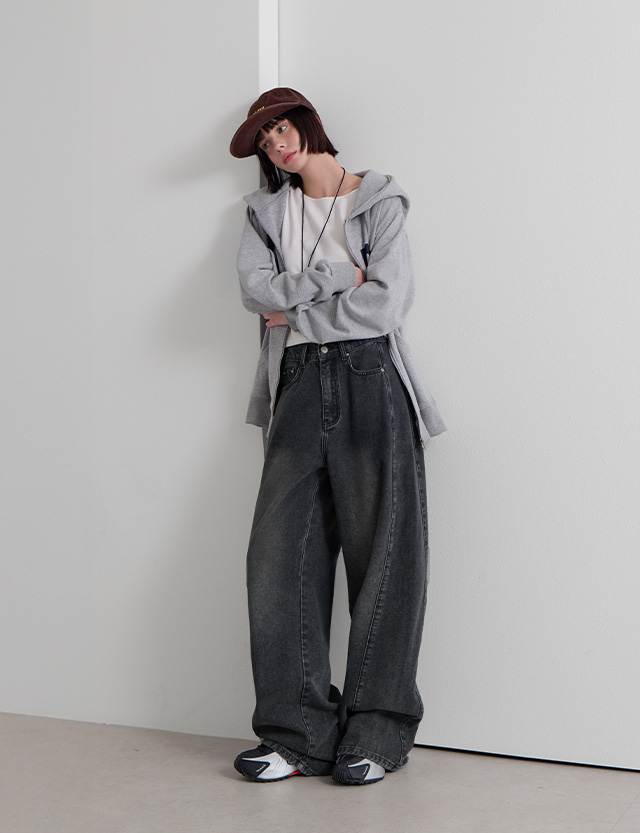 포이디 . 사이드 절개 Balloon Denim Pants 86468