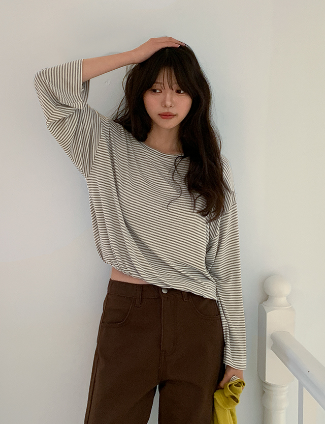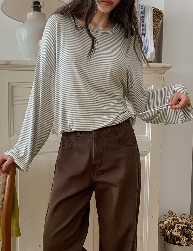 비테프 string Stripe color combination Long-sleeve T-shirt 86548