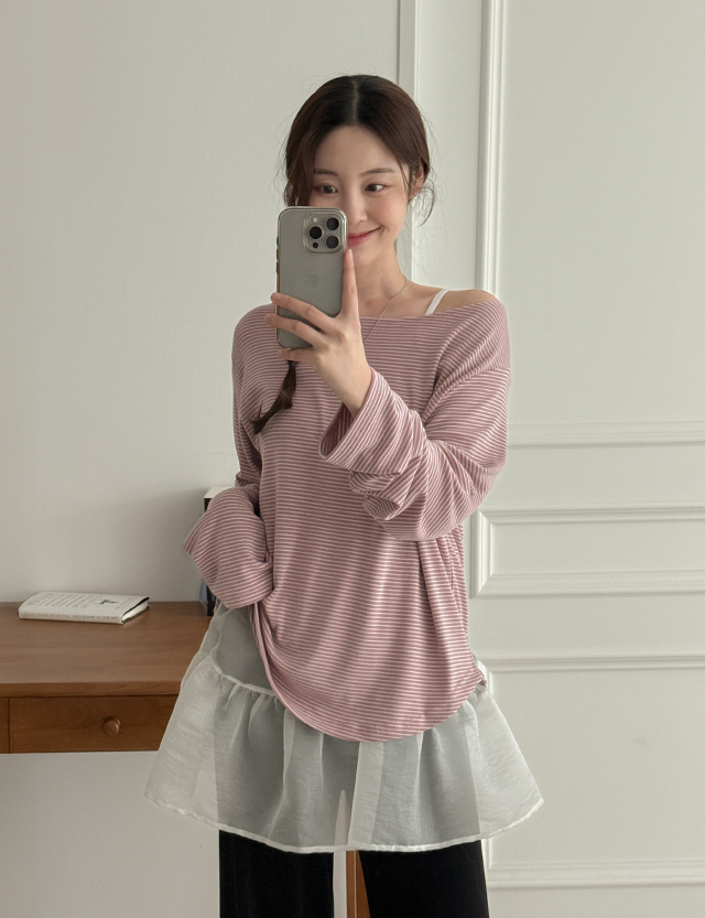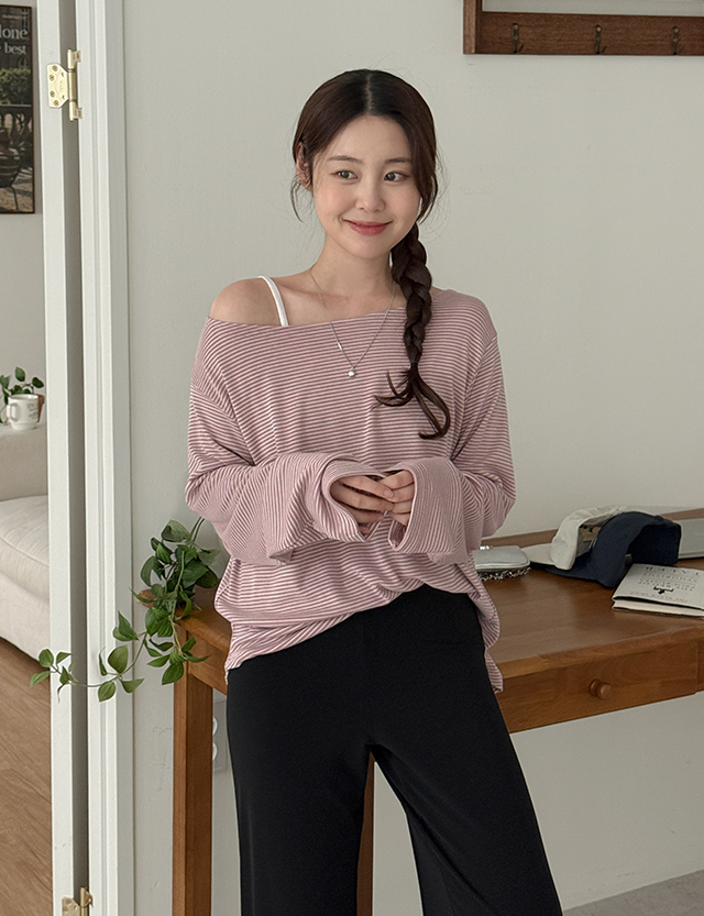 로핼 Stripe 보트넥 Long-sleeve T-shirt 86487