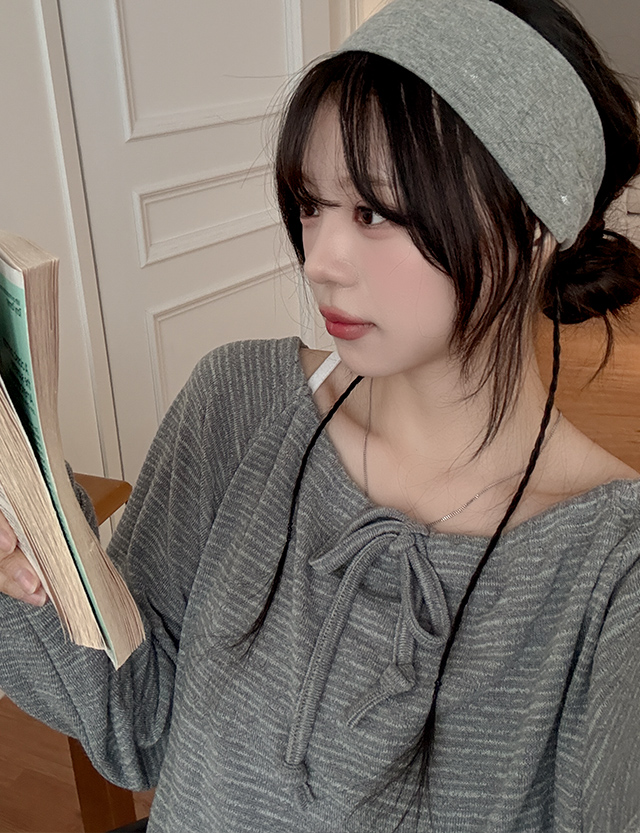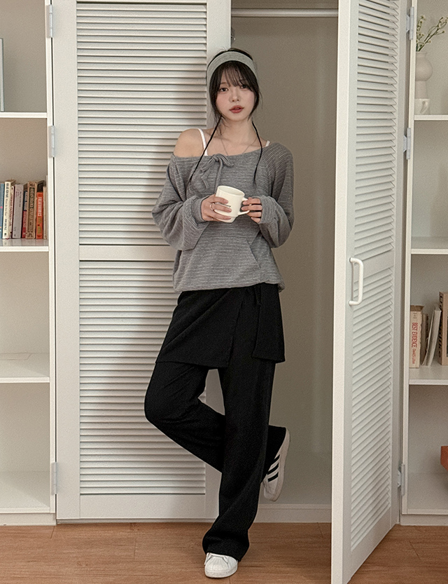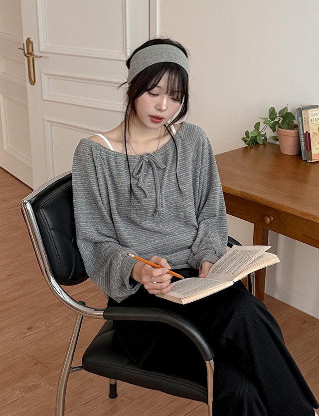 웨윤 string Off shoulder Stripe T-shirt 86389