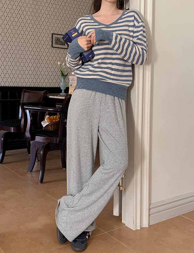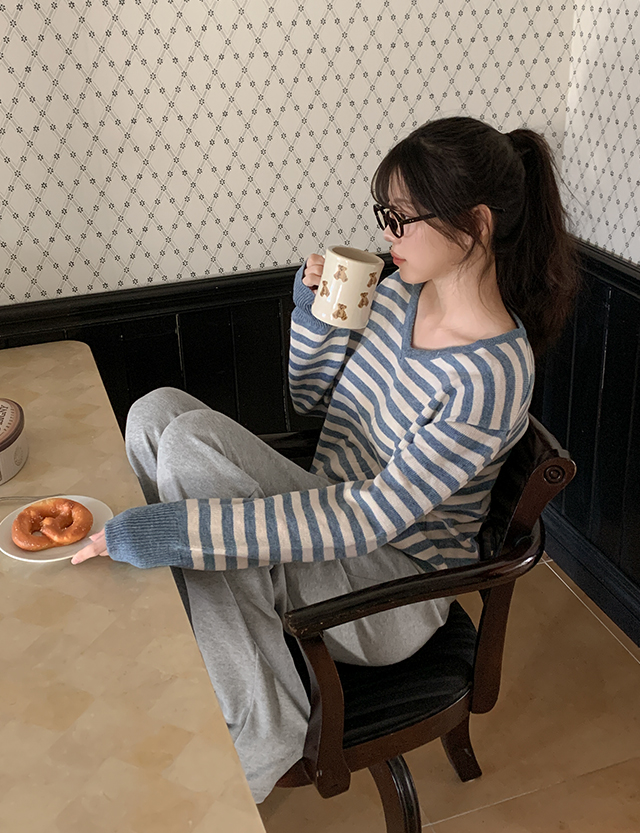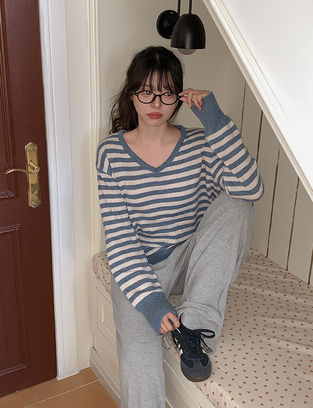 너드언니 loose fit Stripe V-neck Knit 86645