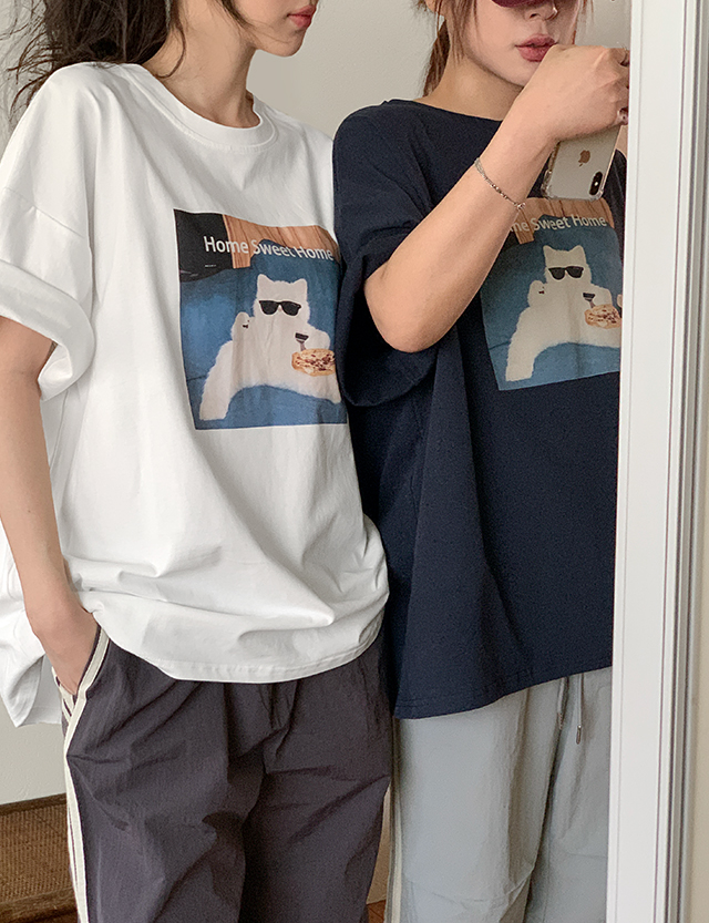 [09초이스] 스윗마이홈 캣츠 loose fit Short-sleeve T-shirt 86537