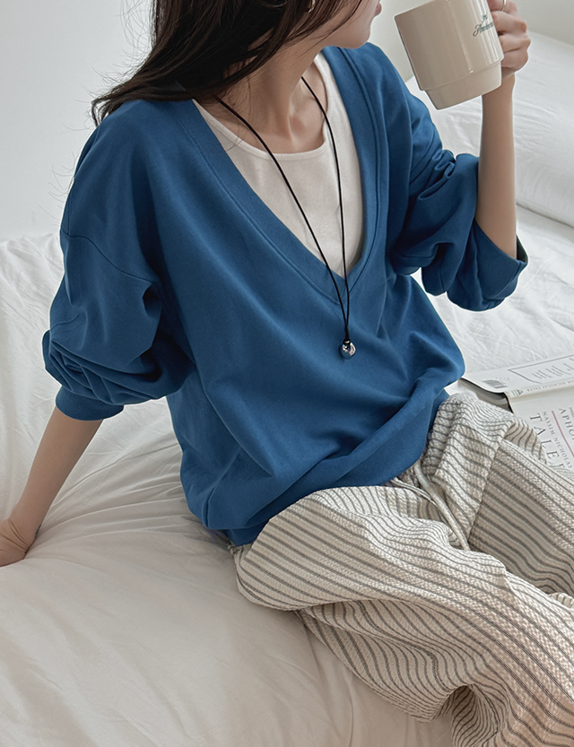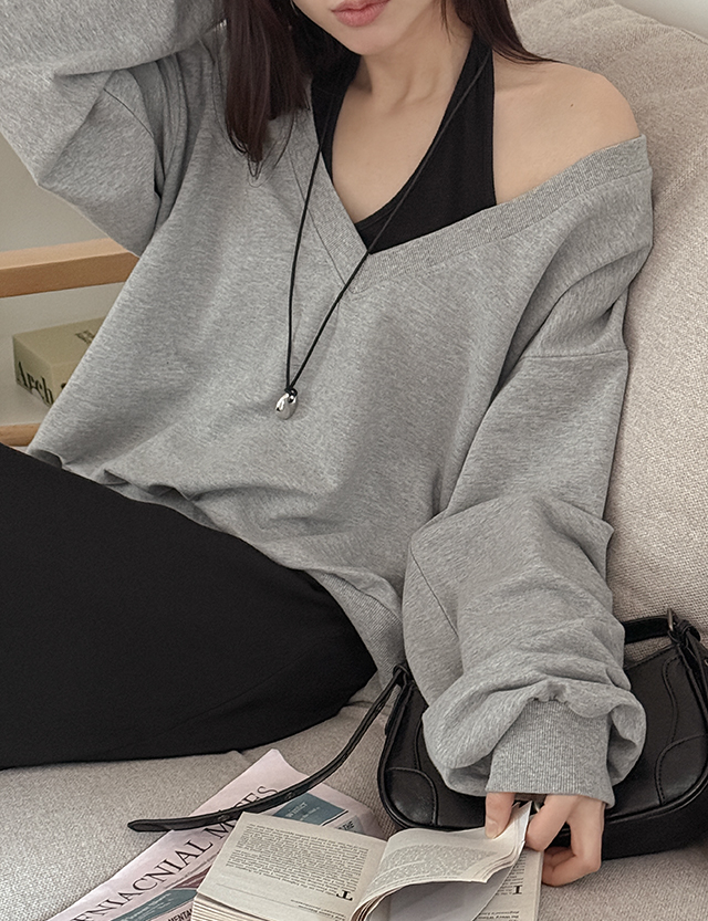 알포라 딥 V-neck loose fit Man to man 86719