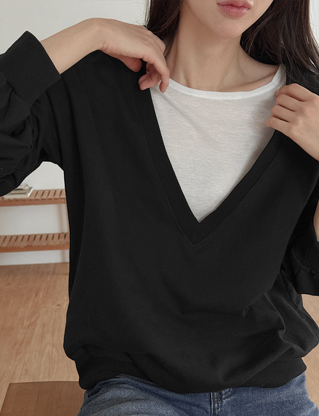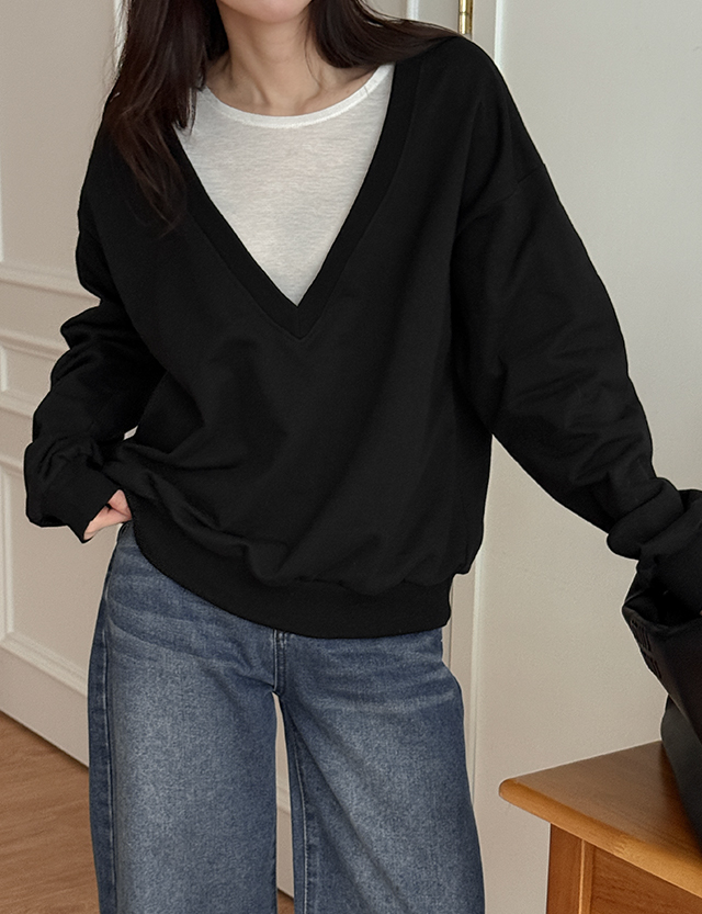 알포라 딥 V-neck loose fit Man to man 86719