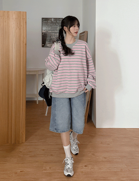 마시멜로 loose fit Stripe Man to man 86580