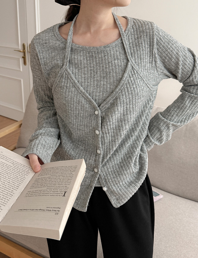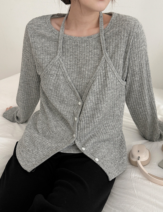 슈로티 Halter neck layered Corrugated T-shirt 86740