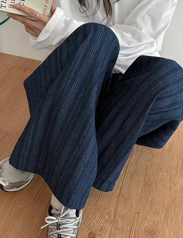 수플레 Stripe Banding . Denim Pants 86796