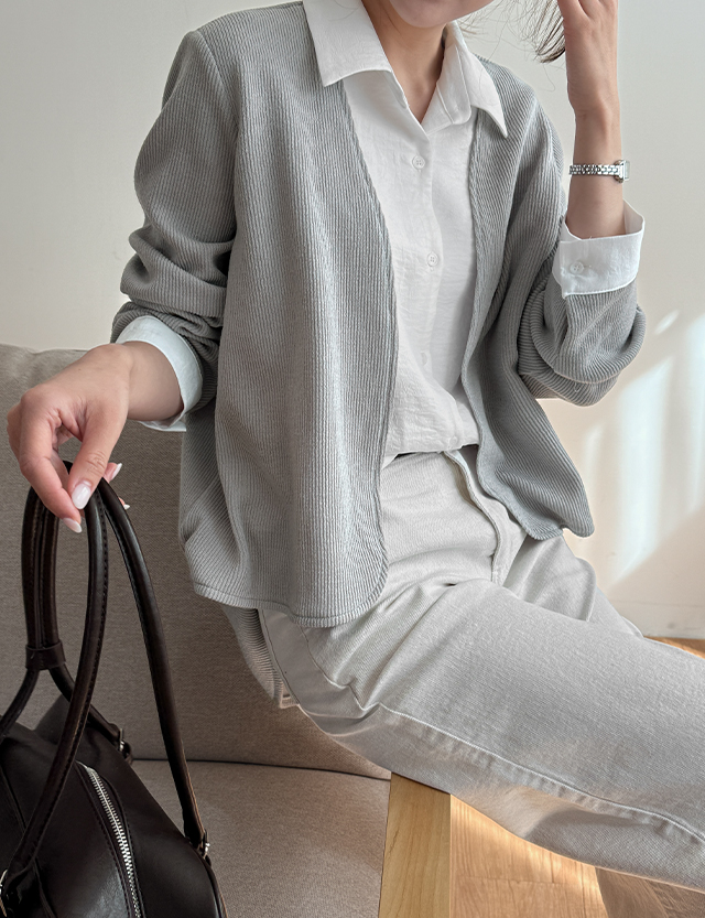 르베로 Cardigan layered unbalance loose fit Shirt 86815