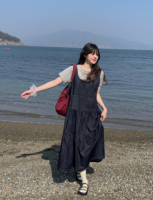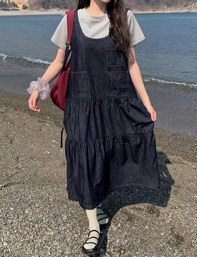 [논페이드] 페티나 뷔스티에 Denim Long One Piece 87038