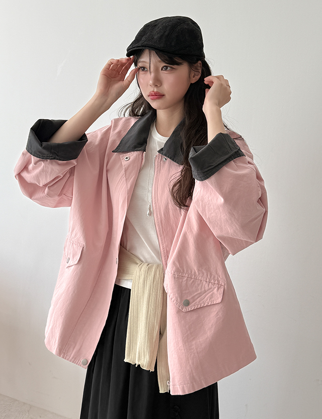 베스틴 color combination Kara string loose fit Jacket 87107