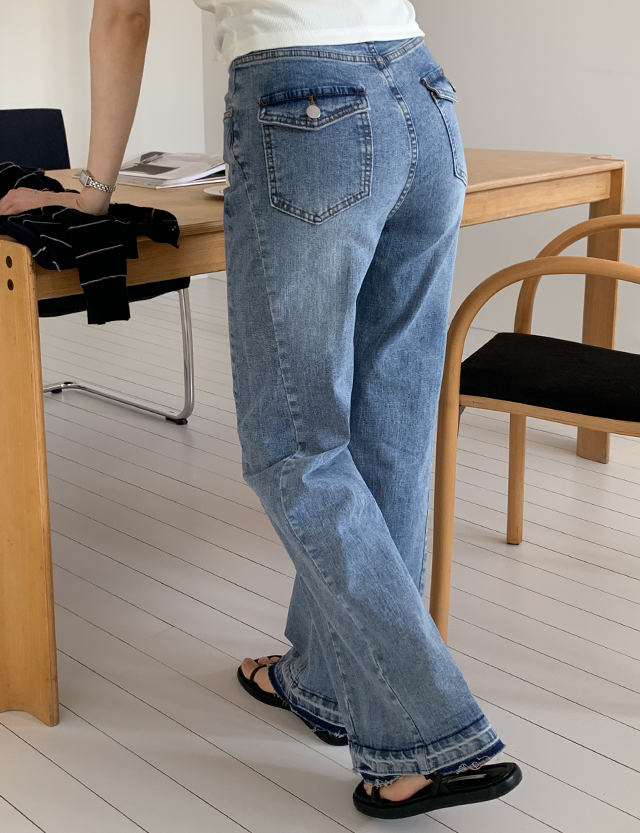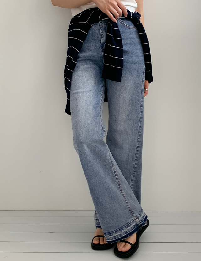 [2가지기장] 쉐입 밑단 key point 속밴딩 Denim Boot cut Pants 87016