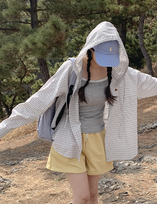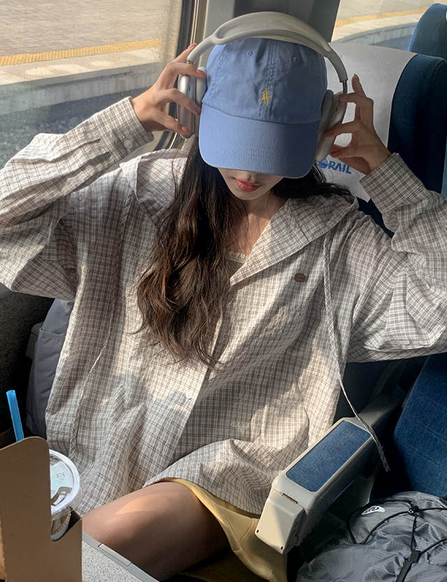 카와비 loose fit Check Hood Shirt 87032