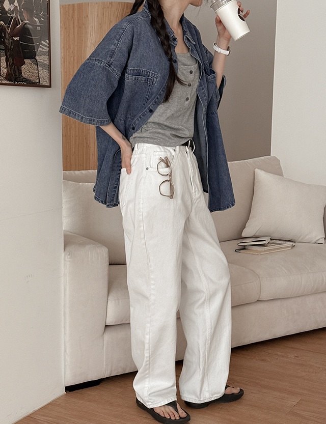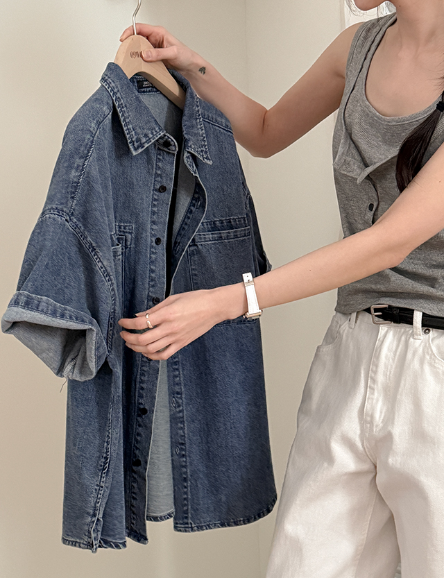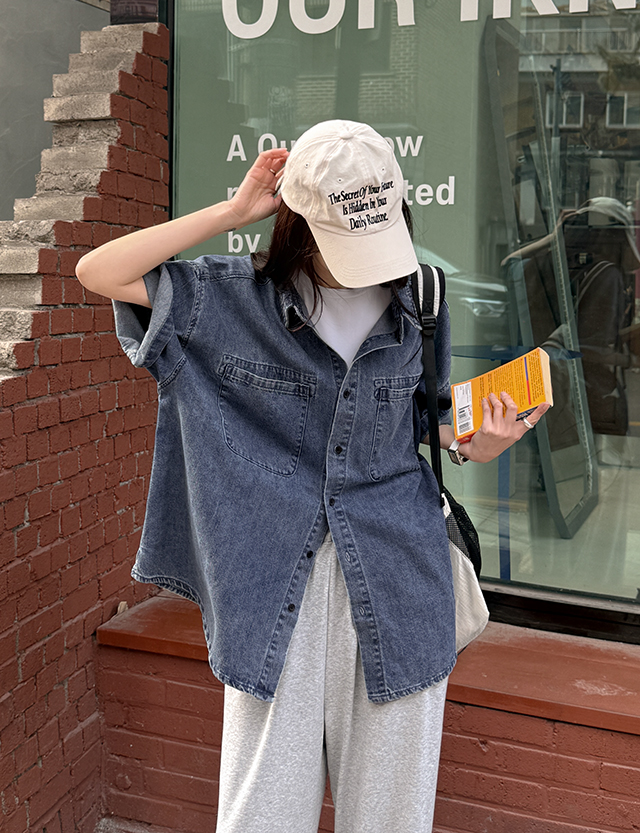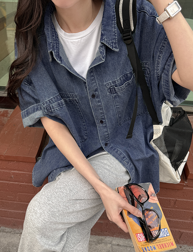 어텐션 리얼루즈핏 Short-sleeve Denim Shirt 87276