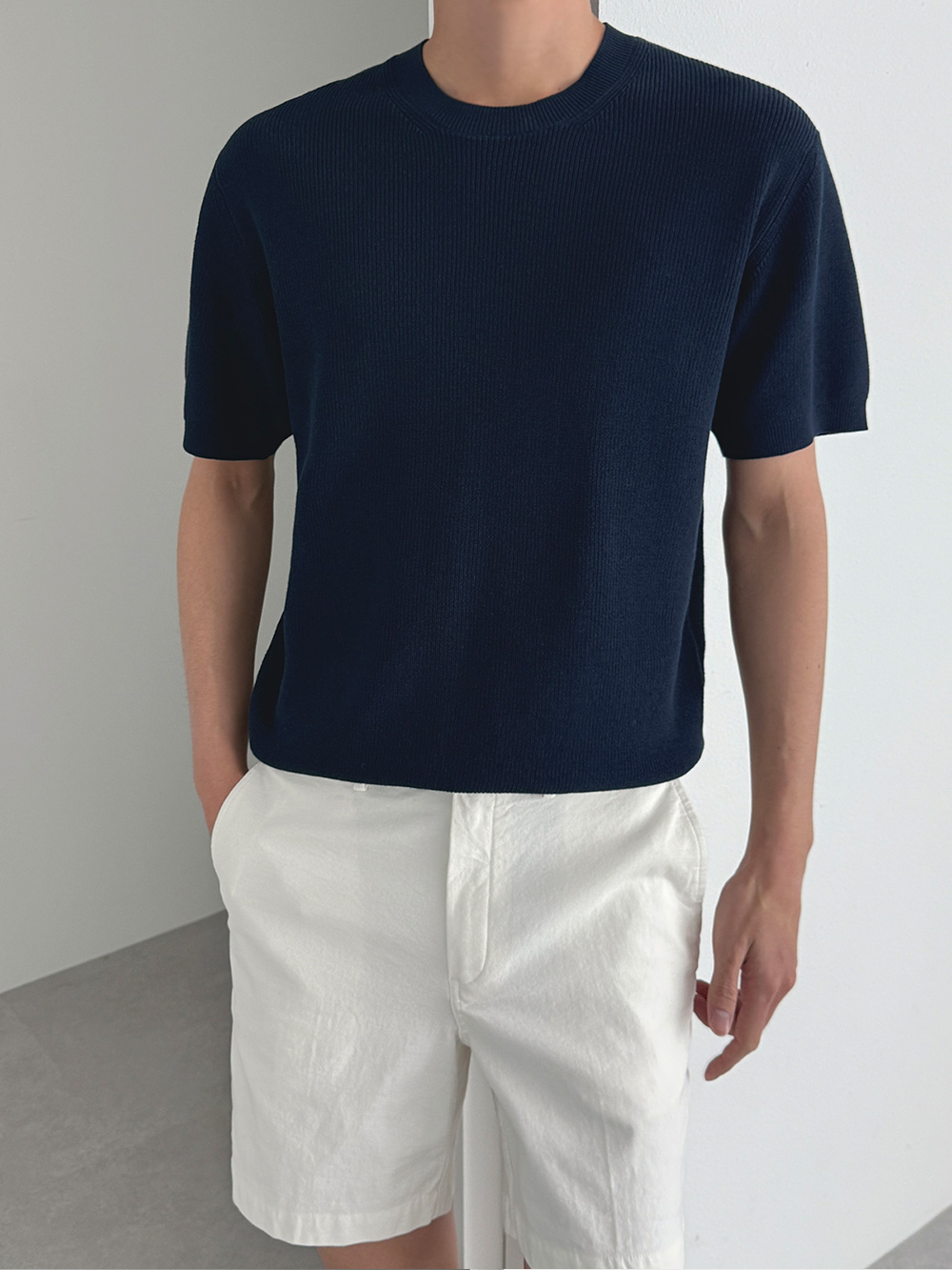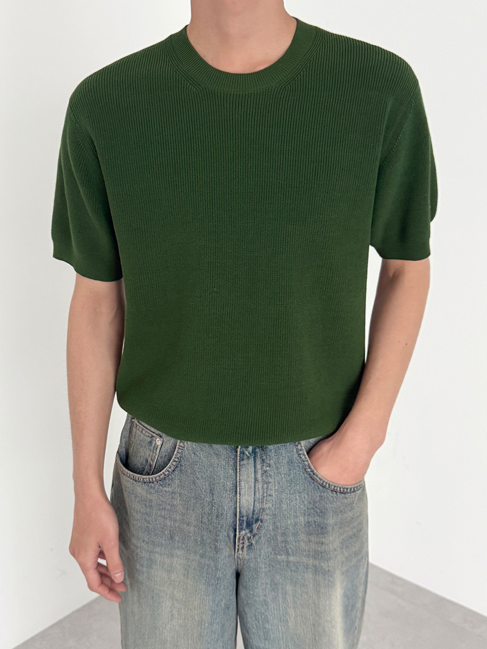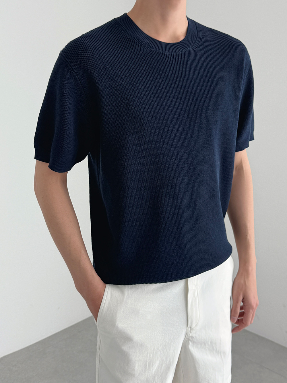 [MADE] cooling solid round neck Short-sleeve Knit 30215