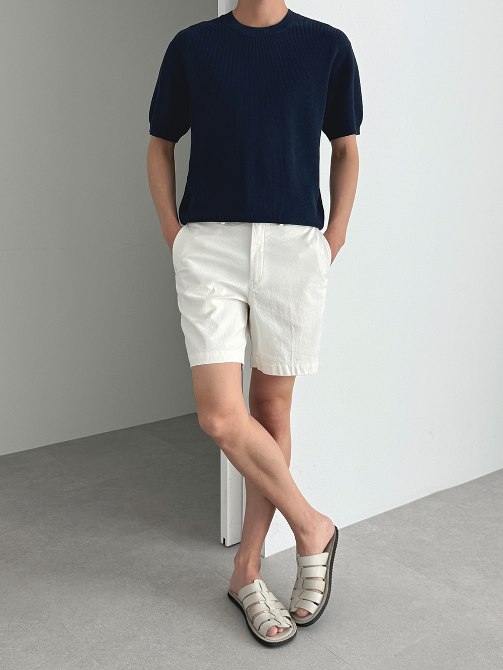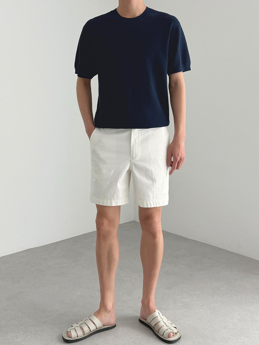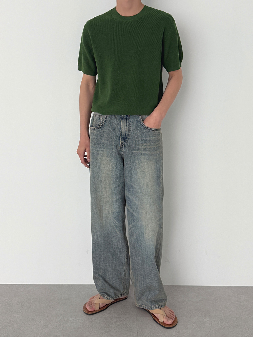 [MADE] cooling solid round neck Short-sleeve Knit 30215