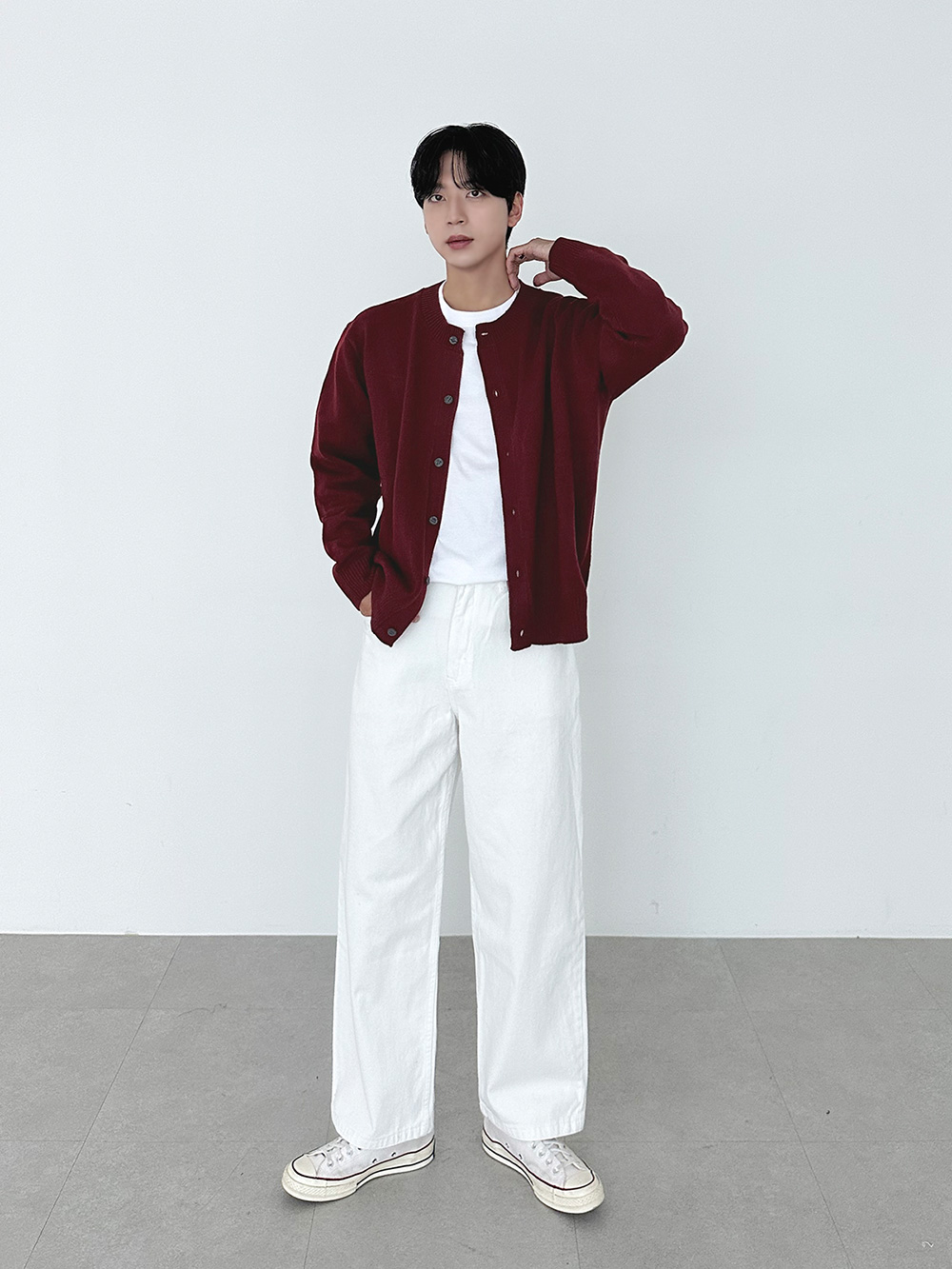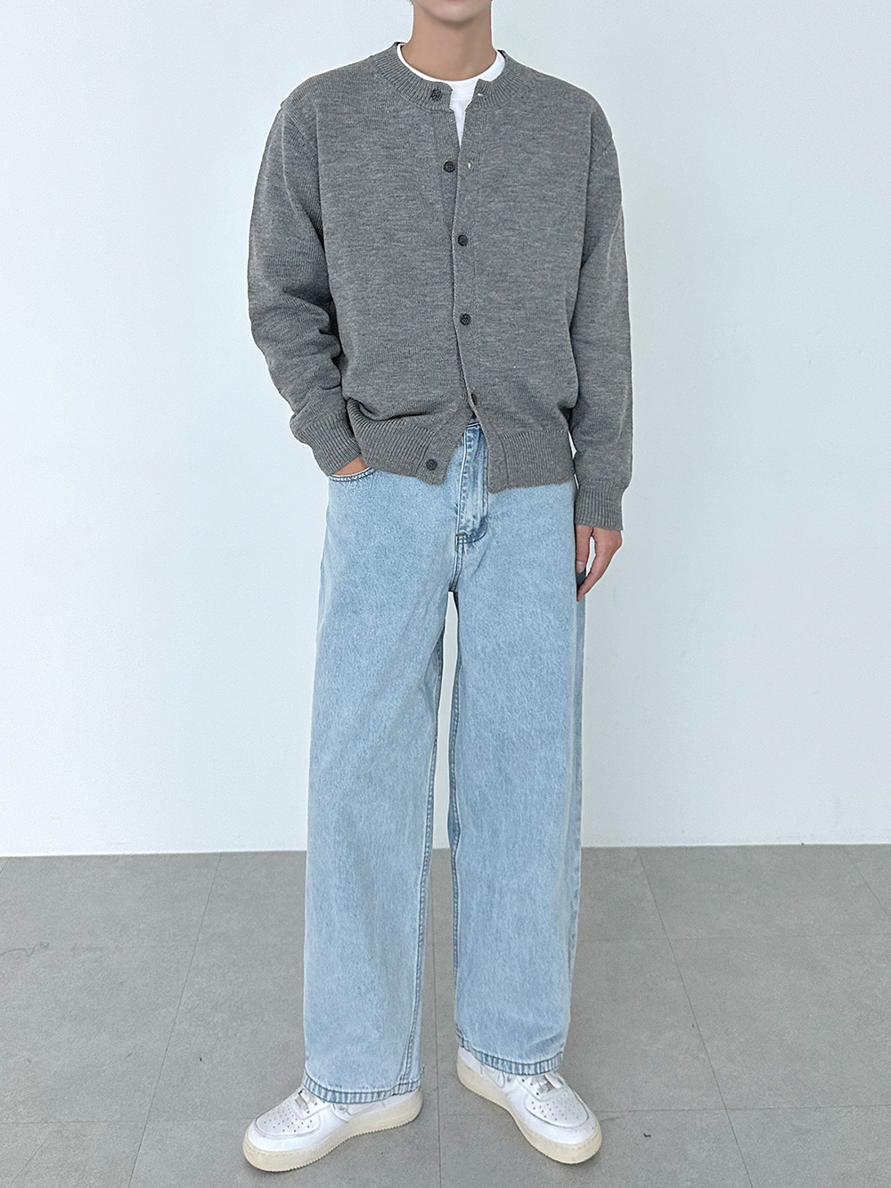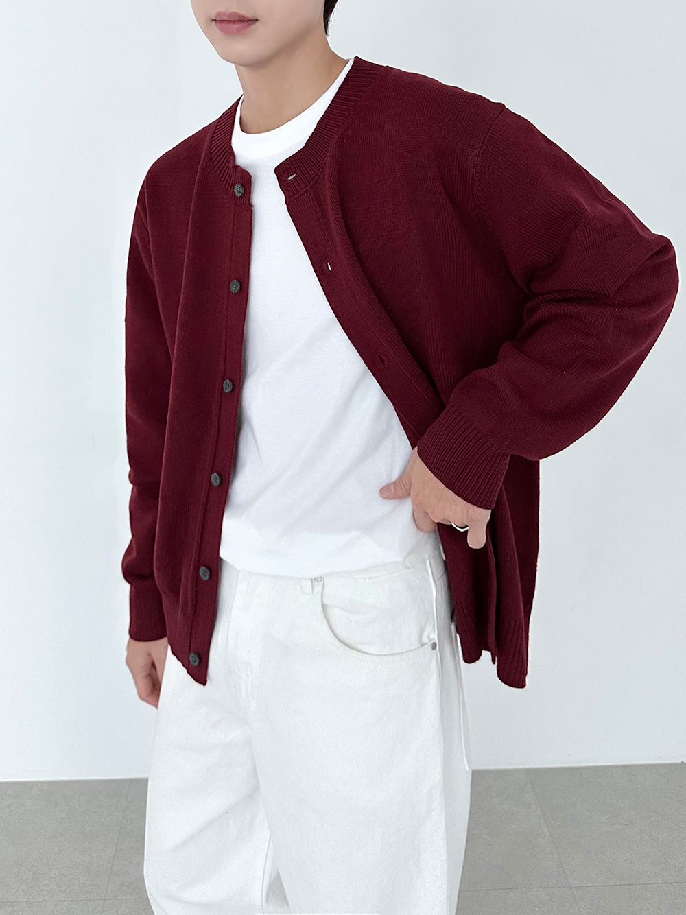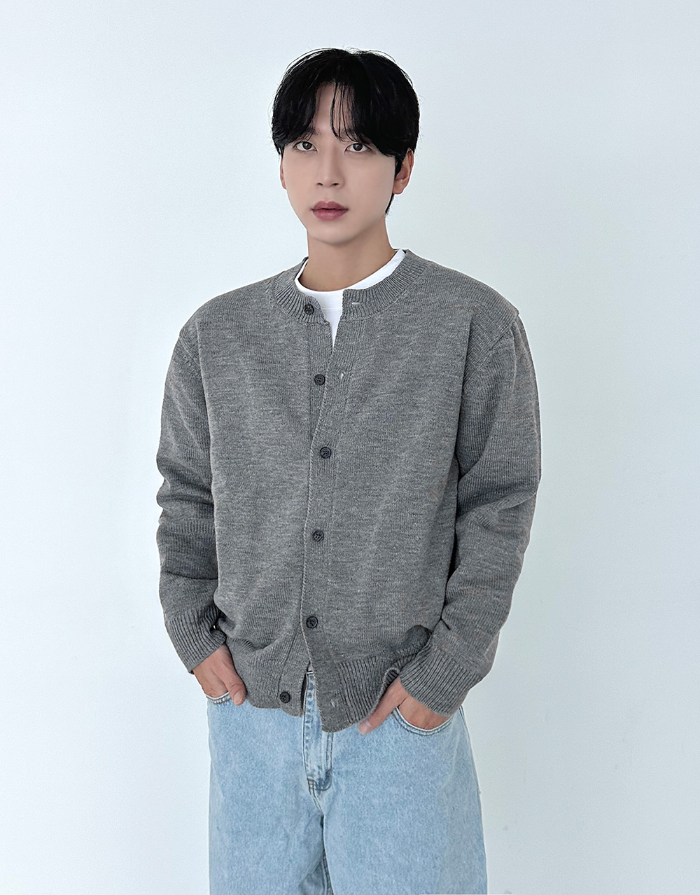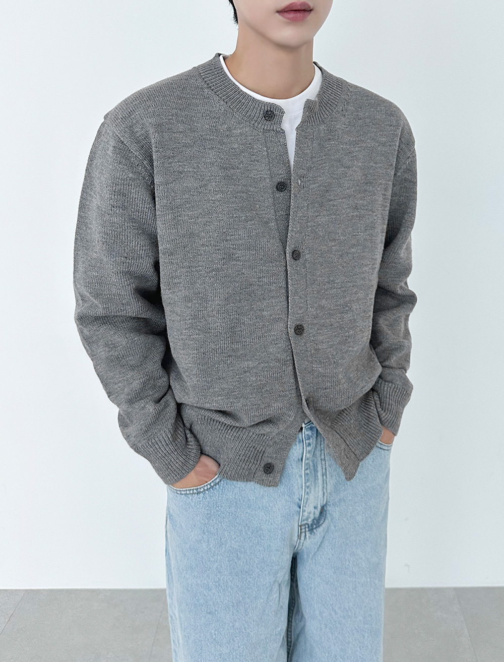 882 man of basic round Cardigan 30995