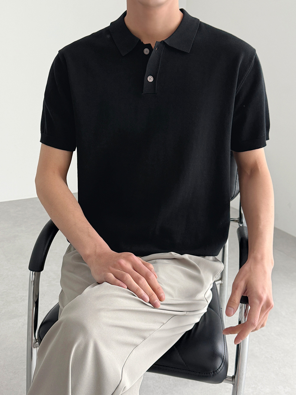 [MADE] anytime two button collar Short-sleeve Knit 30213