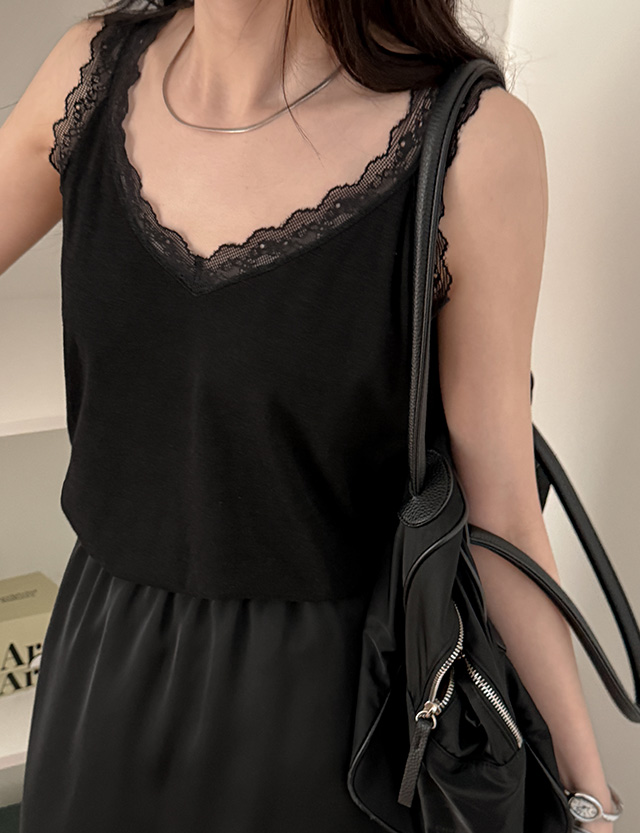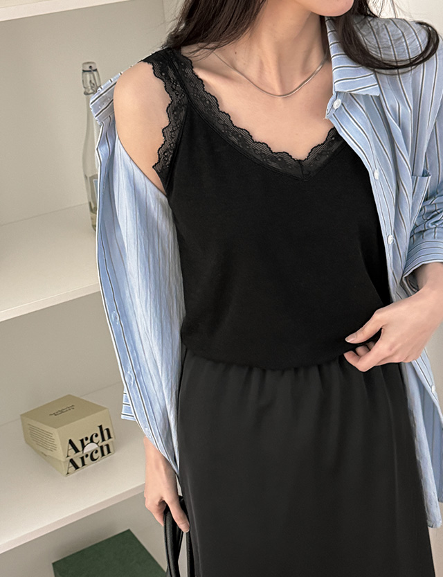 로맨틱하게 V-neck Linen Race Sleeveless shirts 87304