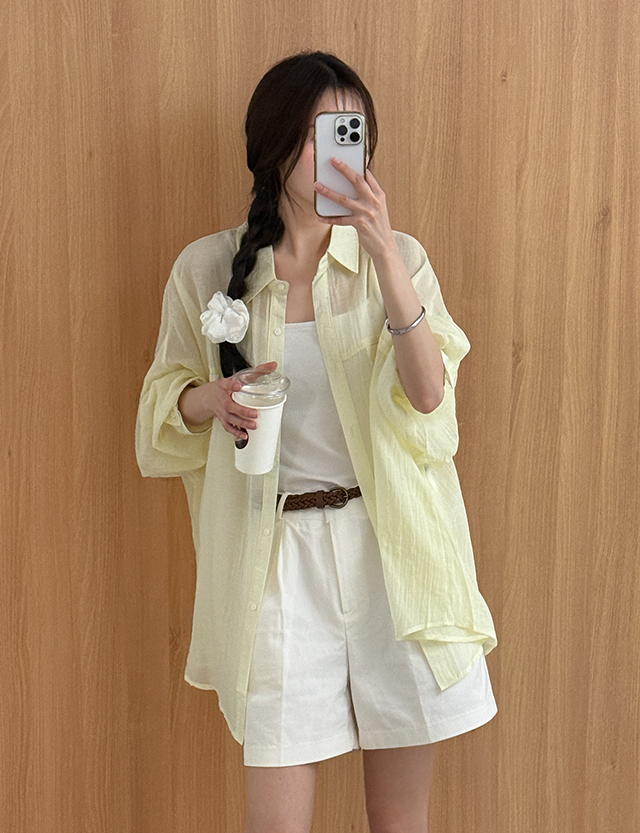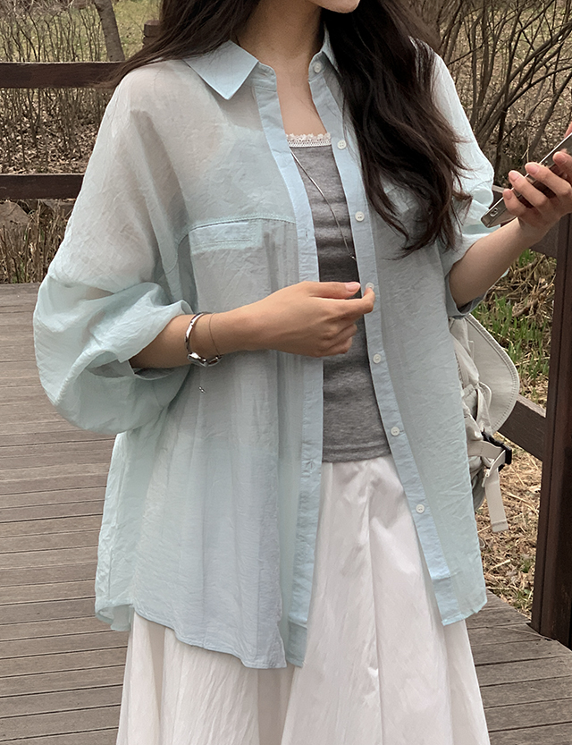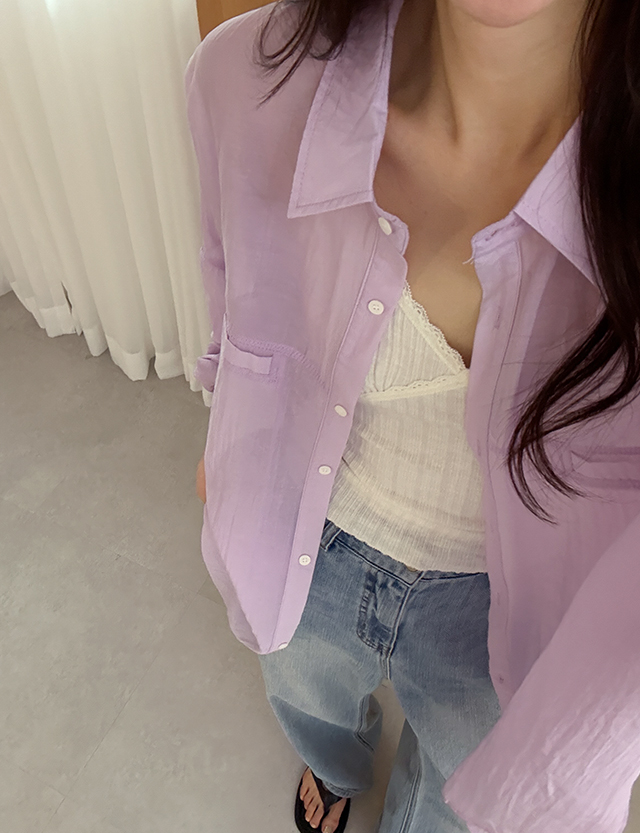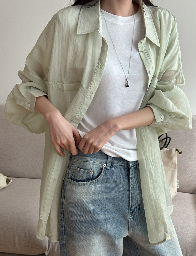 [09초이스] 컬러별로 골라입는 loose fit 립포켓 See-through look Shirt 87367
