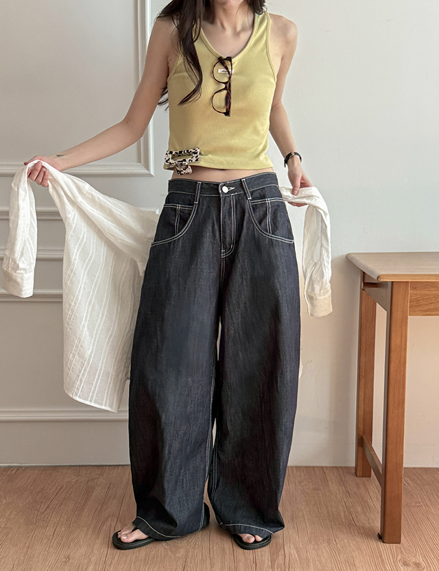 로우무드 논페이드 . Balloon Denim Pants 87459
