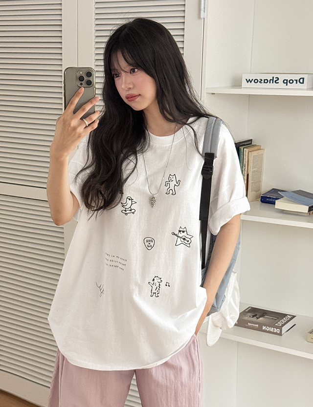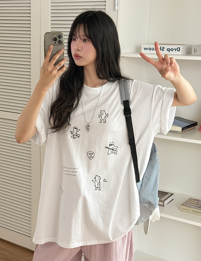 스크리블 리얼루즈핏 Short-sleeve . T-shirt 87382