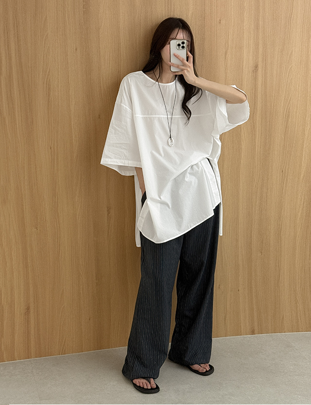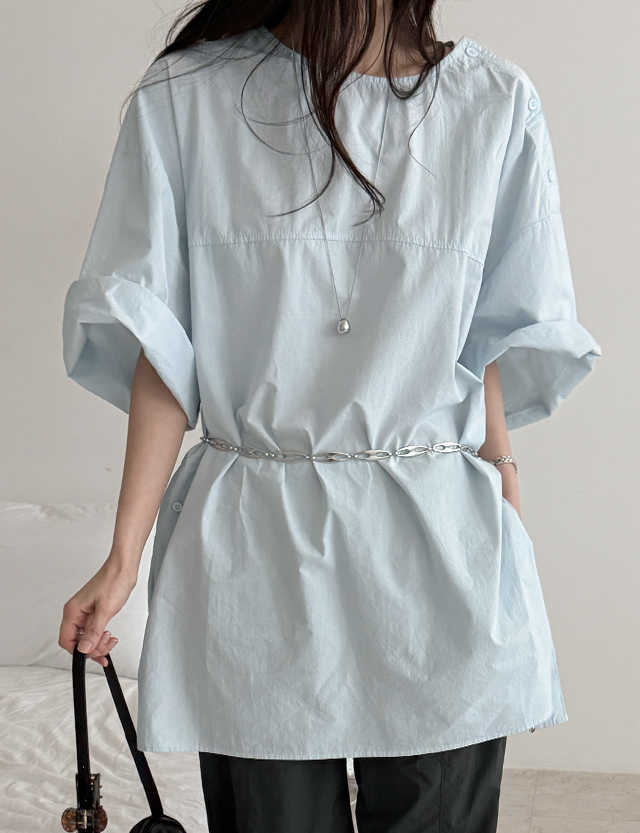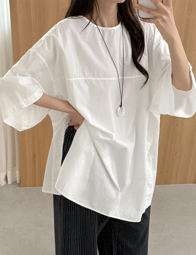 [09초이스] 은근한 key point . 슬릿 Short-sleeve Long Blouse 87477