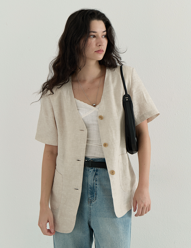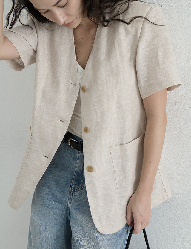 [한정판매][Special Sale40%] 유니베이직 Linen 100% Short-sleeve Jacket 86596