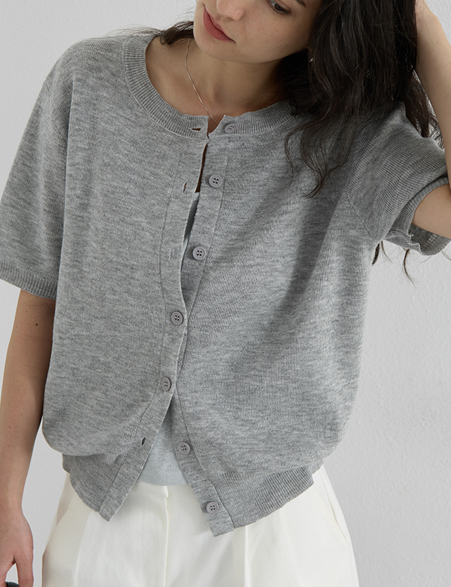 소피아 Raund neck Short-sleeve loose fit Cardigan 87571