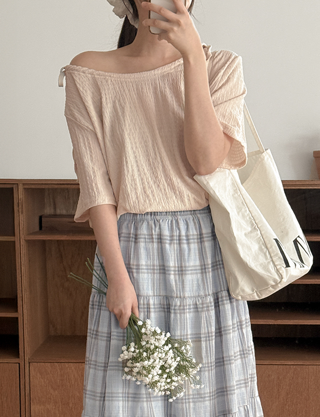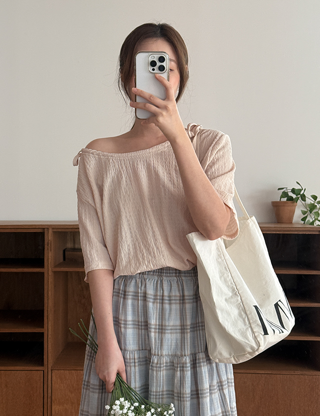 엔젤링 loose fit 넥 string Short-sleeve T-shirt 87438