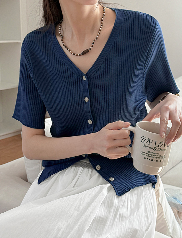 디디브 V-neck Corrugated Knit Cardigan 87542