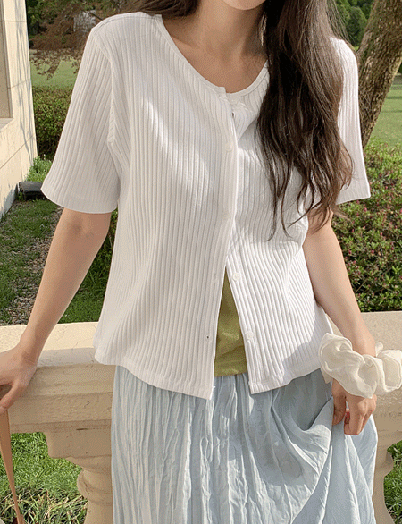 부들리 Corrugated Round Short-sleeve Cardigan 87651