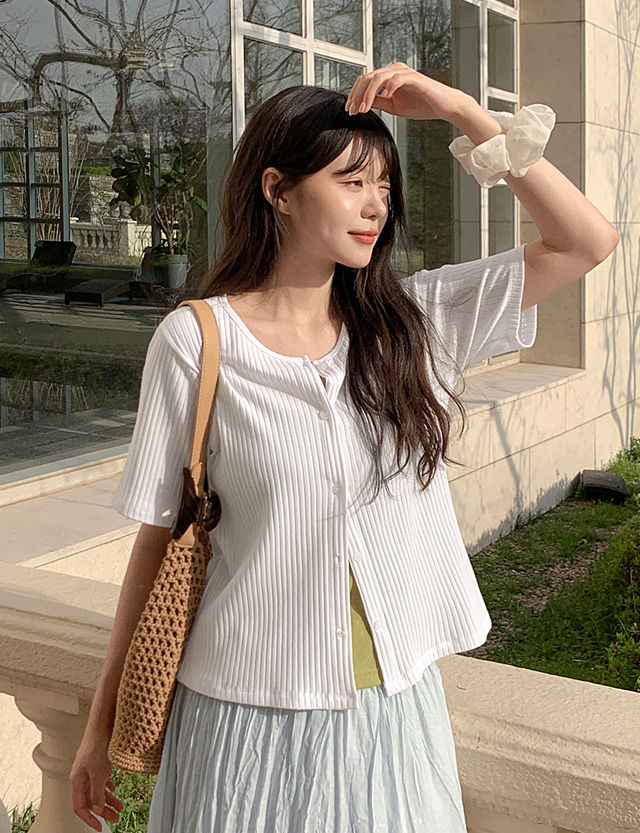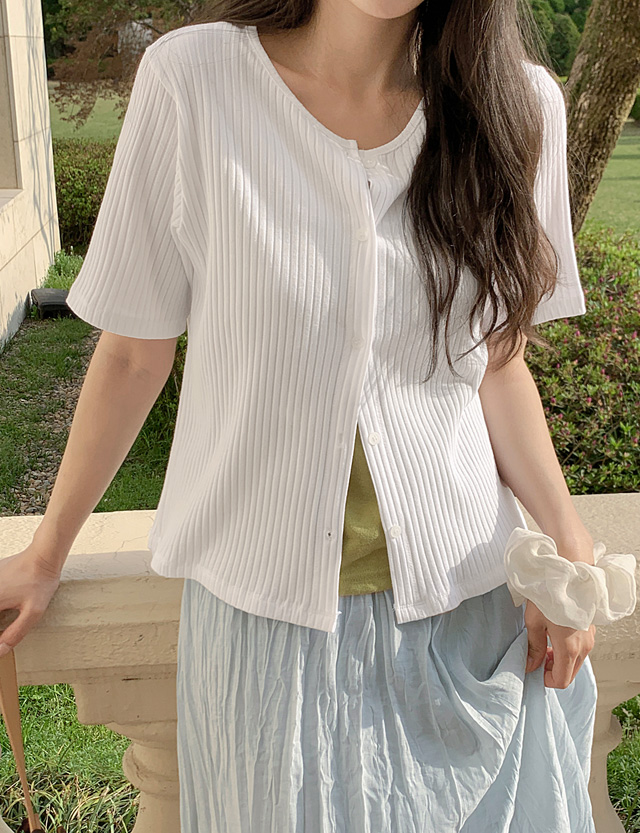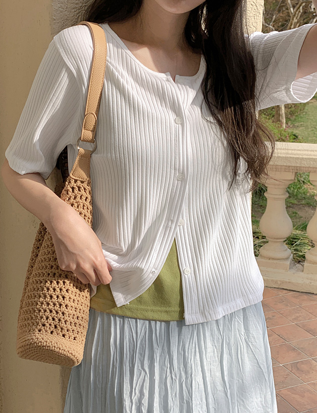 부들리 Corrugated Round Short-sleeve Cardigan 87651