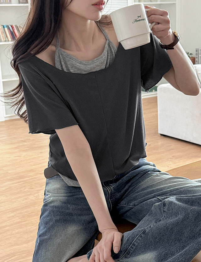 페어트 Halter neck layered Short-sleeve T-shirt 87552