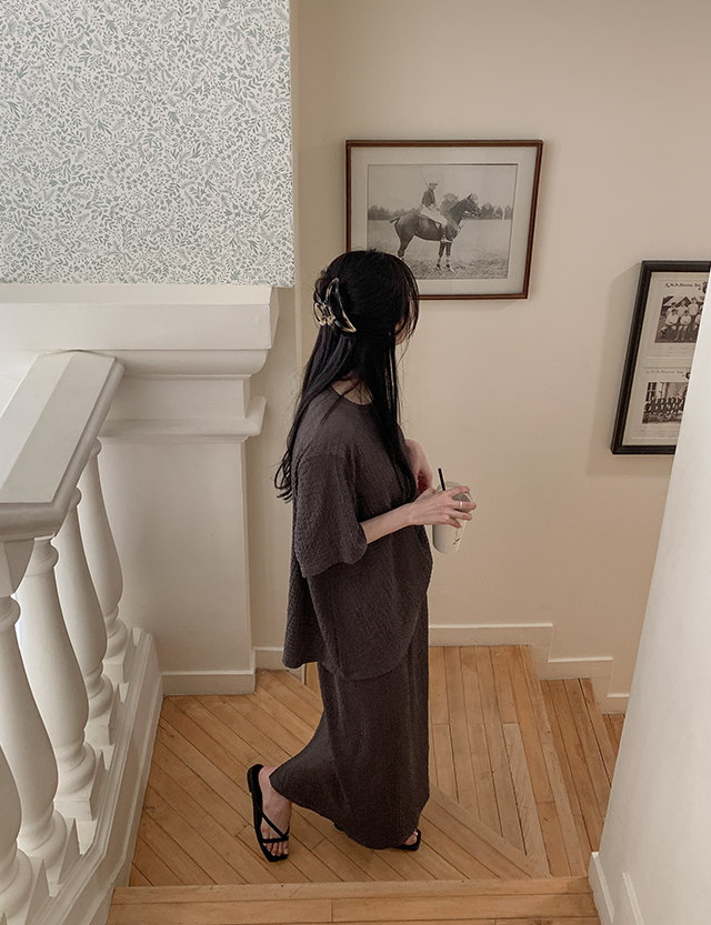 [Set] 컴피 Wrinkle loose fit T-shirt Banding Skirt Set 87638