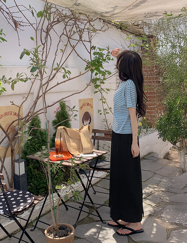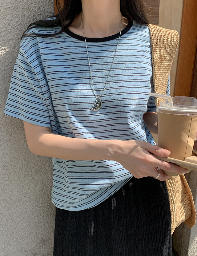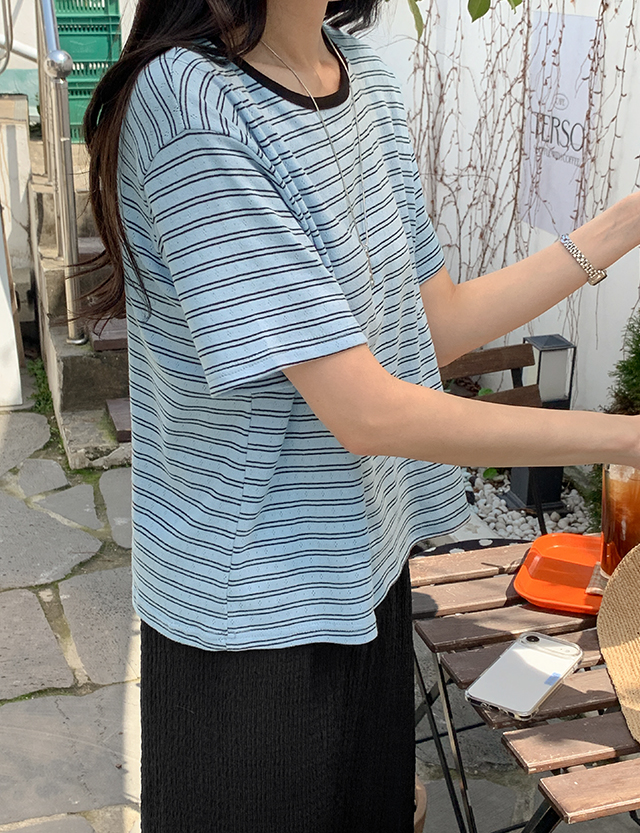 마레 Punching Stripe 세미크롭 T-shirt 87639