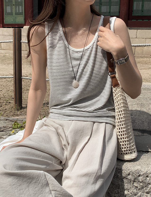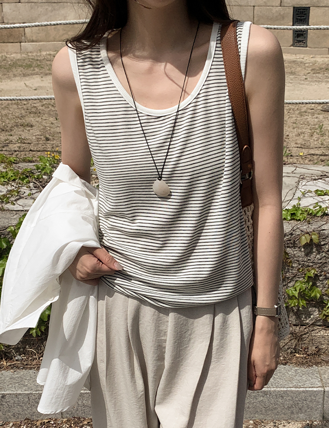 파파피 Stripe Sleeveless shirts T-shirt 87726