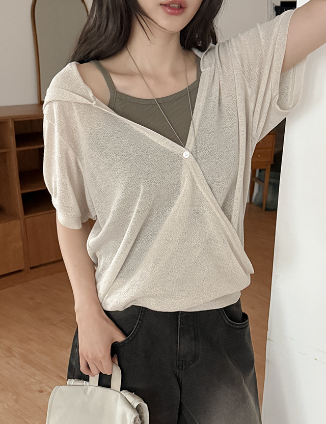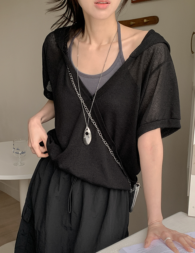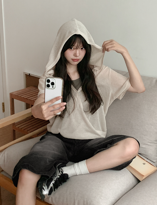 테린 . Hood Short-sleeve Linen T-shirt 87758