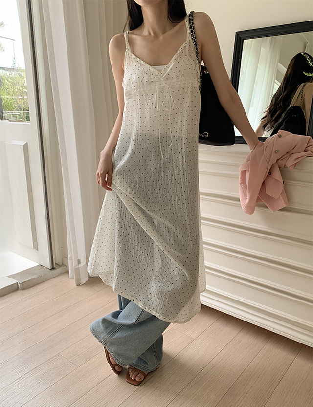 로인 Dot See-through look Race Long One Piece 87784
