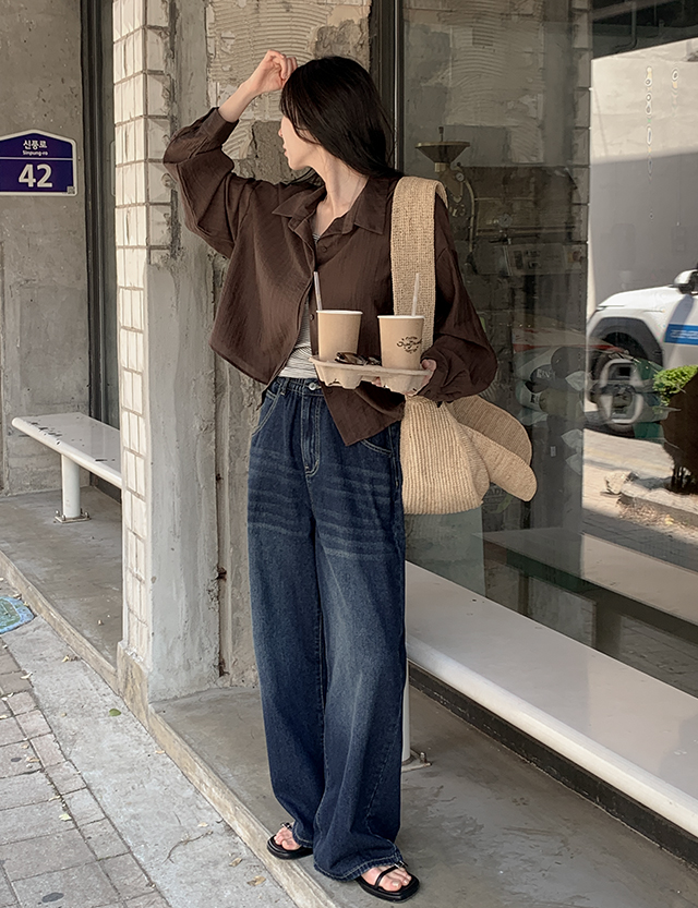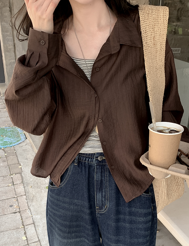 베일 더블라인 See-through look 세미크롭 Shirt 87642